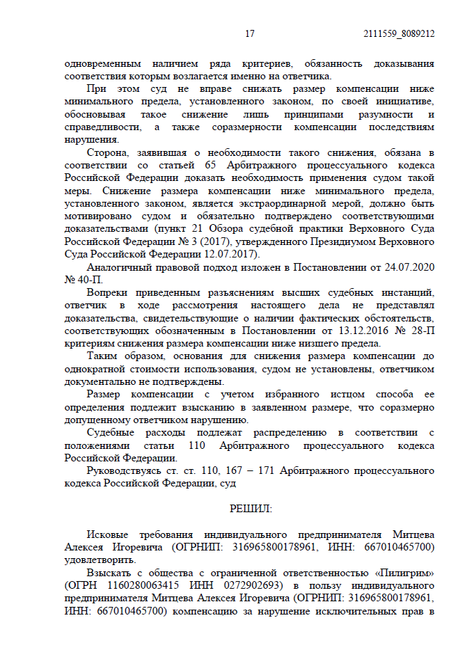 - Ответчик заявил, что узнал о нарушении только из нашей претензии и сразу удалил фото. По их версии, период незаконного использования составил всего 1 месяц.
